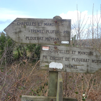 Es regnet stark, und obwohl ich nicht gleich auf Anhieb den richtigen Weg aus die Stadt raus finde, fühle ich mich frisch und komme gut voran. Es geht wieder vorbei an einigen landwirtschaftlichen Betrieben. Um 15 Uhr bin ich in Trémél, wobei ich um einiges früher hätte sein können, wenn ich nicht eine ungewollte 3 km Schlaufe auf dem GR Le Pays de Morlaix (einen Rundwanderweg um die Stadt Morlaix der auch teilweise parallel an von mir benutzten GR Wegen läuft) gegangen wäre.