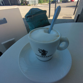 Ich holte mir in der Lobby einen Kaffee und aß in meinem Zimmer ein paar Kekse dazu. Danach startete ich die heutige Etappe. Der Weg führte den ganzen Tag über Straßen, aber der Verkehr war nicht allzu stark. Nach etwa fünf Kilometern kam ich an eine Bar und konnte nicht widerstehen. Ich gönnte mir einen Espresso und ein Cornetto.