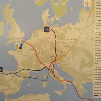 Hier mündet die Romea Strata in den bekanntesten Pilgerweg nach Rom: die Via Francigena. Sie startet in Canterbury und führt über Frankreich und die Schweiz nach Italien.